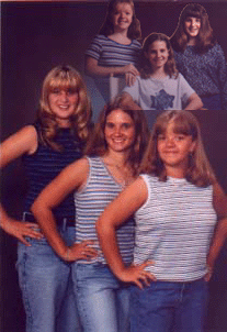 To the right are my two best friends from Georgia, Lynn and Krista. We have all three been best friends for going on 6 years. I have been best friends with Krista since I was in the third grade. We were neighbors in Japan together. I have been best friends with Lynn since sixth grade. The picture is of us is in 9th and 7th grade. I think you can see we have changed just a little.